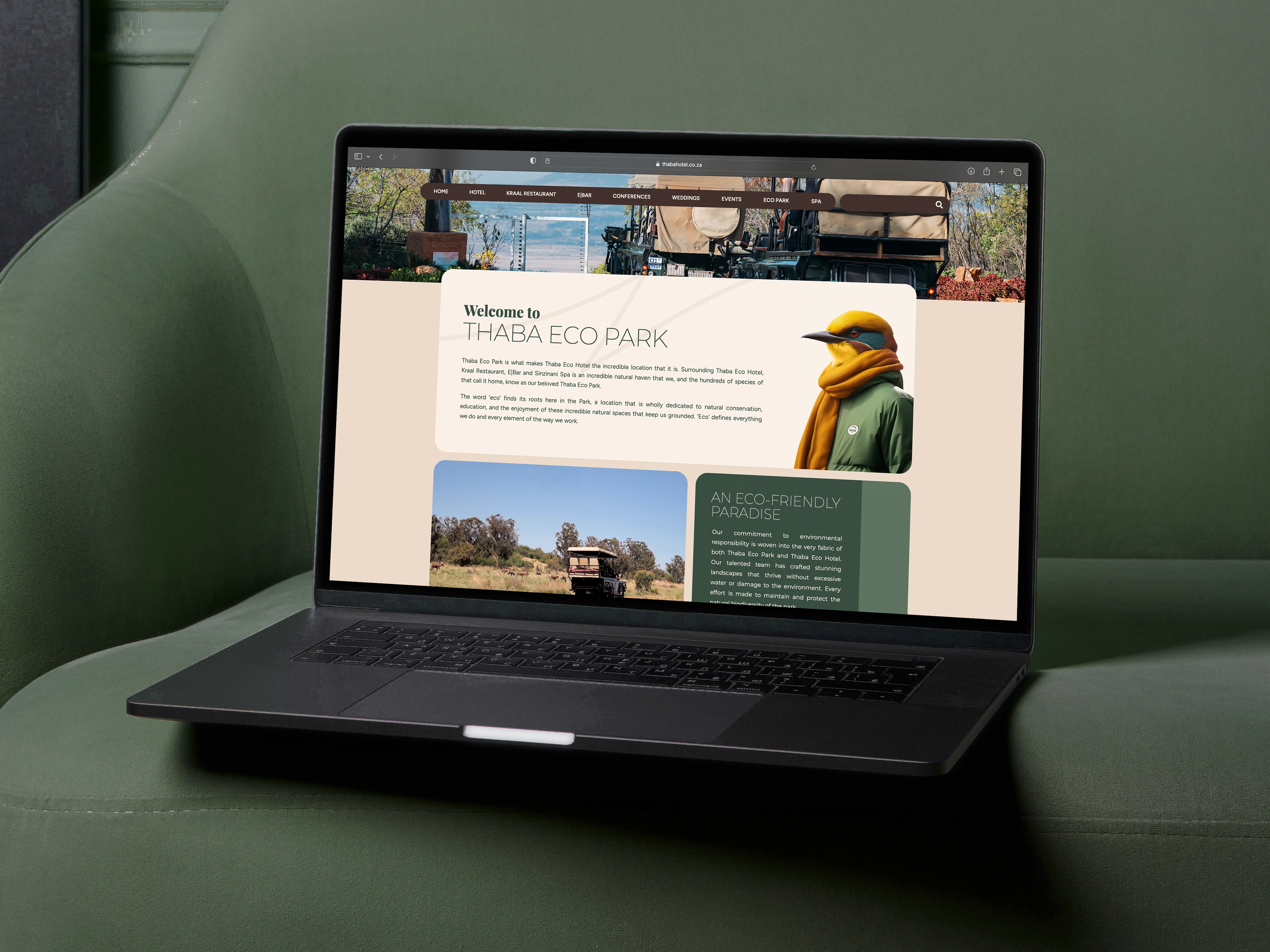 We partnered with Thaba Eco Hotel for website SEO optimisation, and a suite of supporting materials—from stationery and social media posts to instructional designs, evacuation plans, and menus. Working closely with the team at Thaba, we ensured their brand communicates their hospitality ethos while enhancing the online experience through SEO optimisation.
